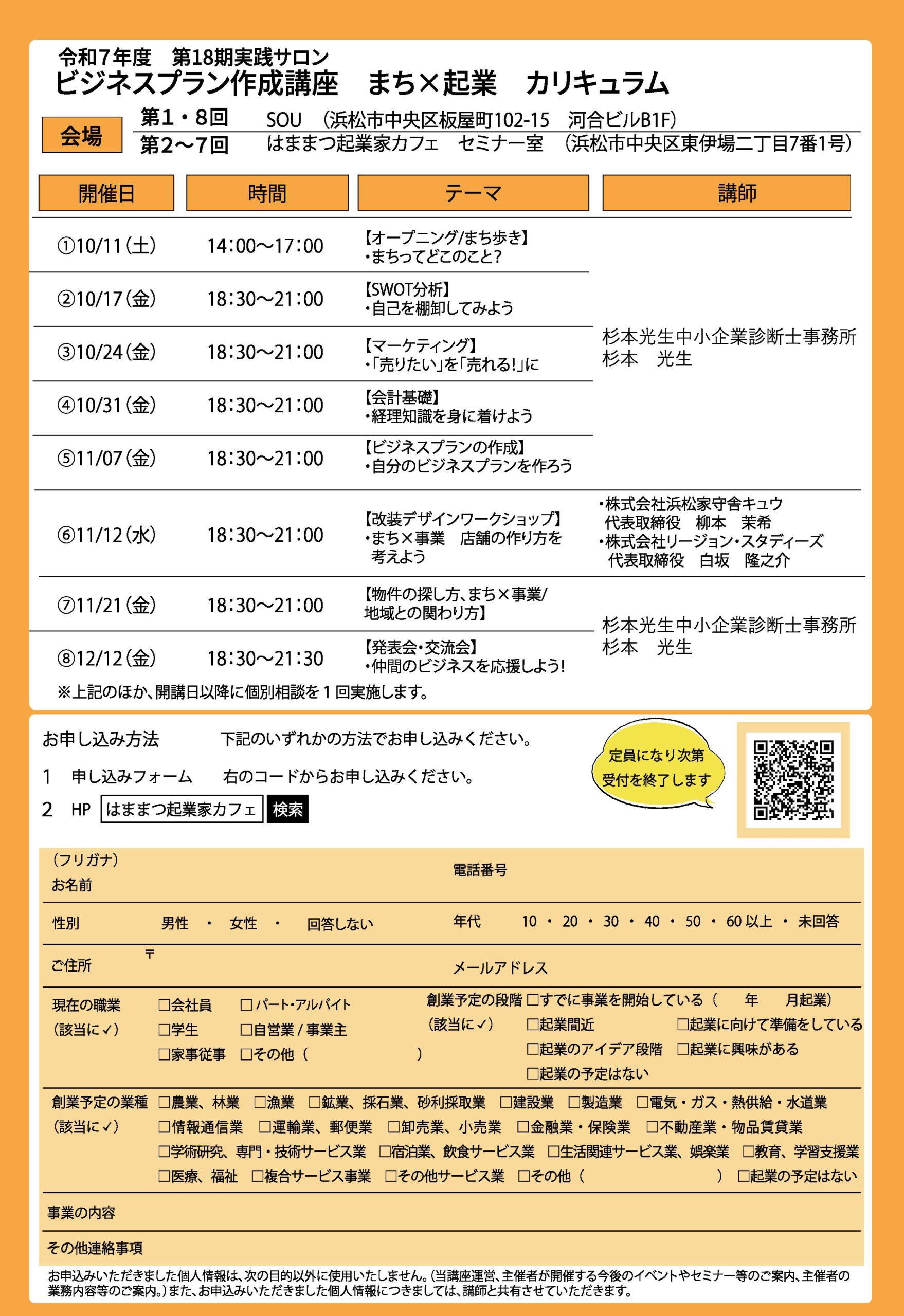 (ビジネスプランの作成)第6回:令和7年11月12日(水)18:30~21:00